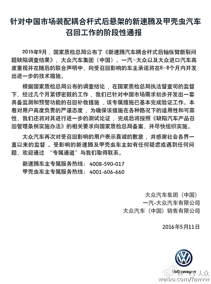 2、速腾部分车型存在缺陷
