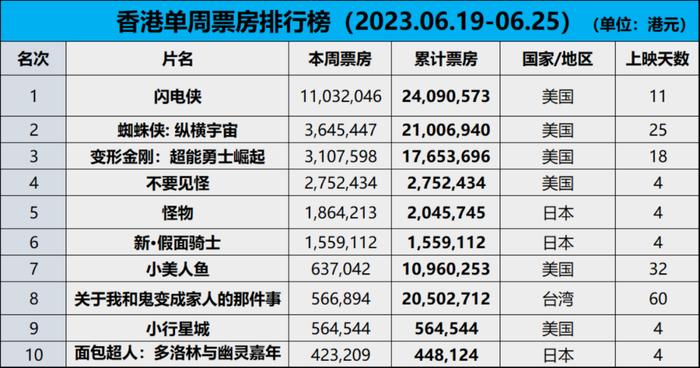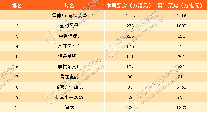 香港最新票房概览